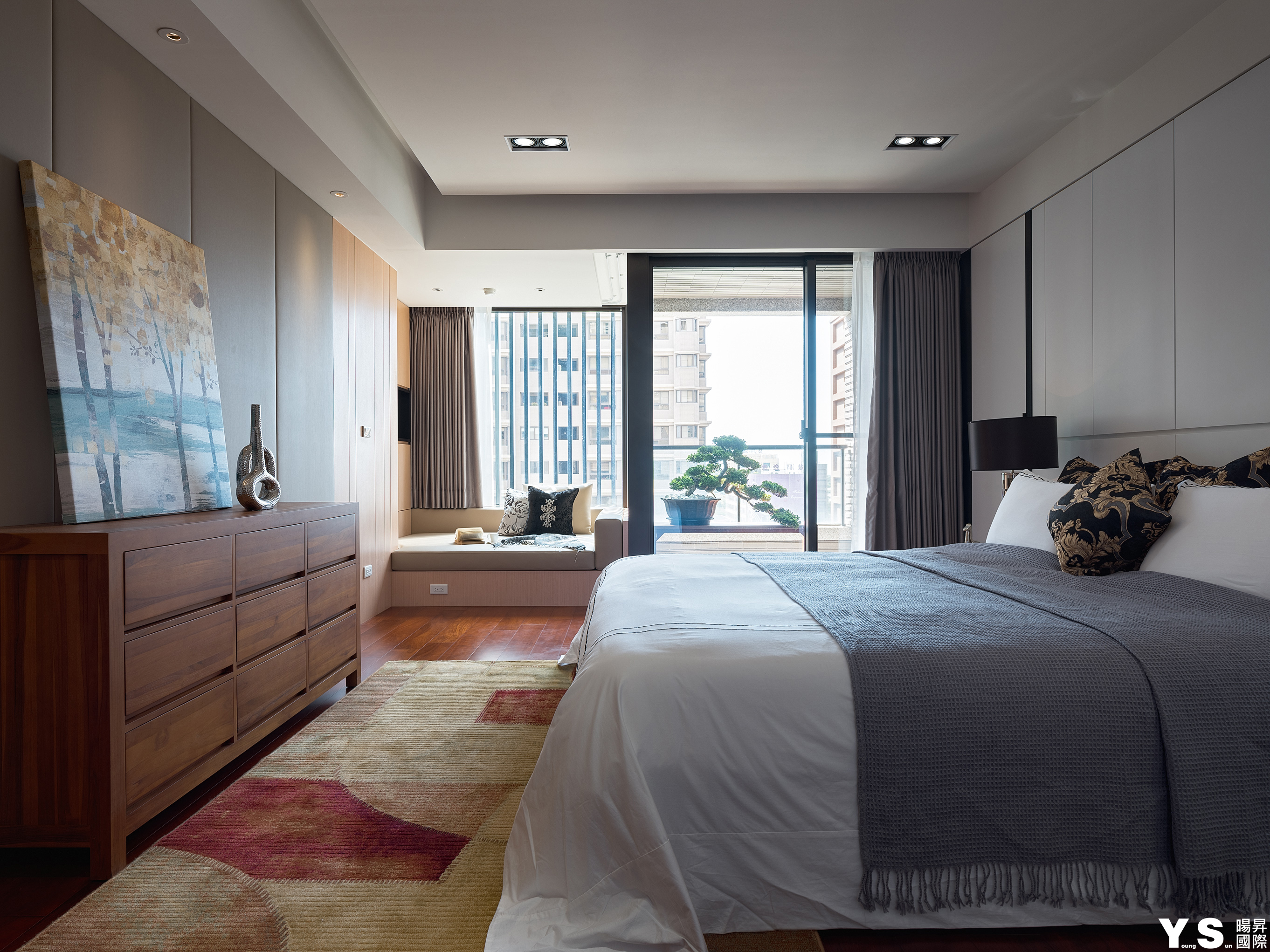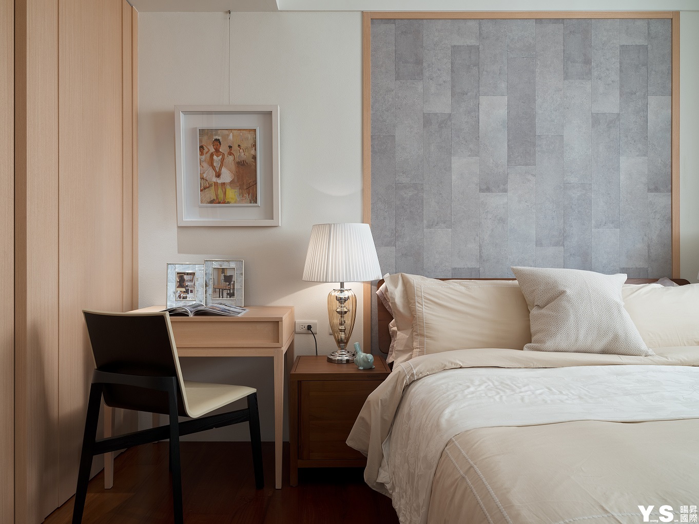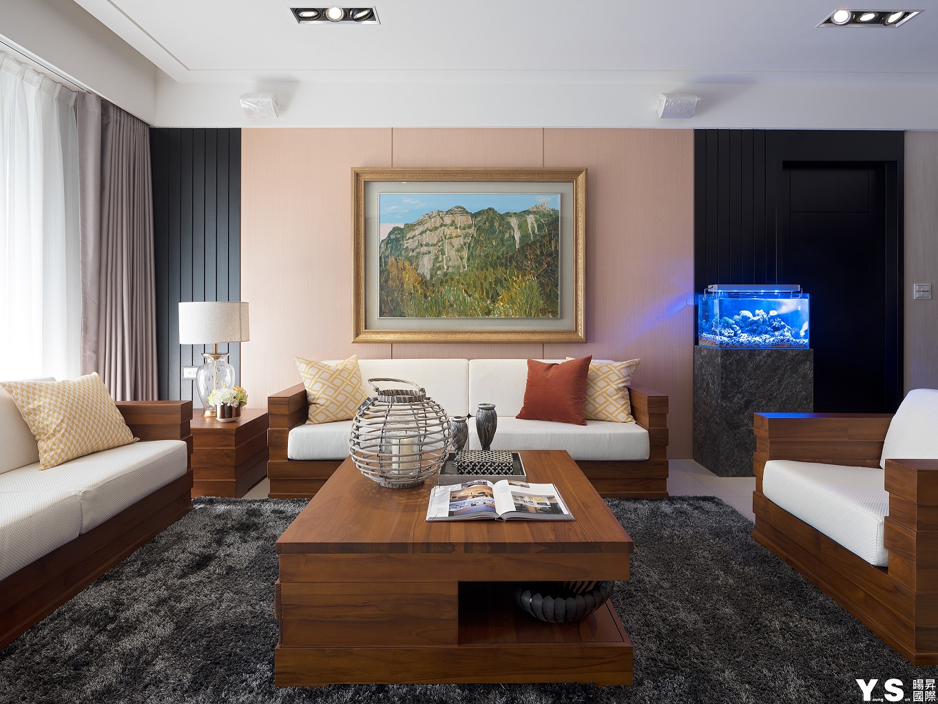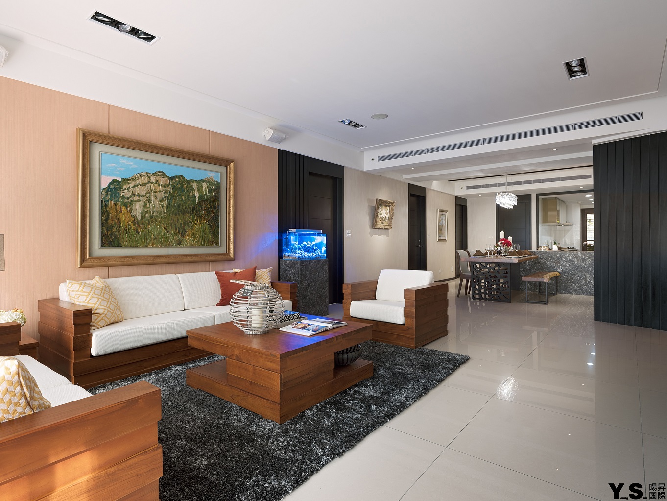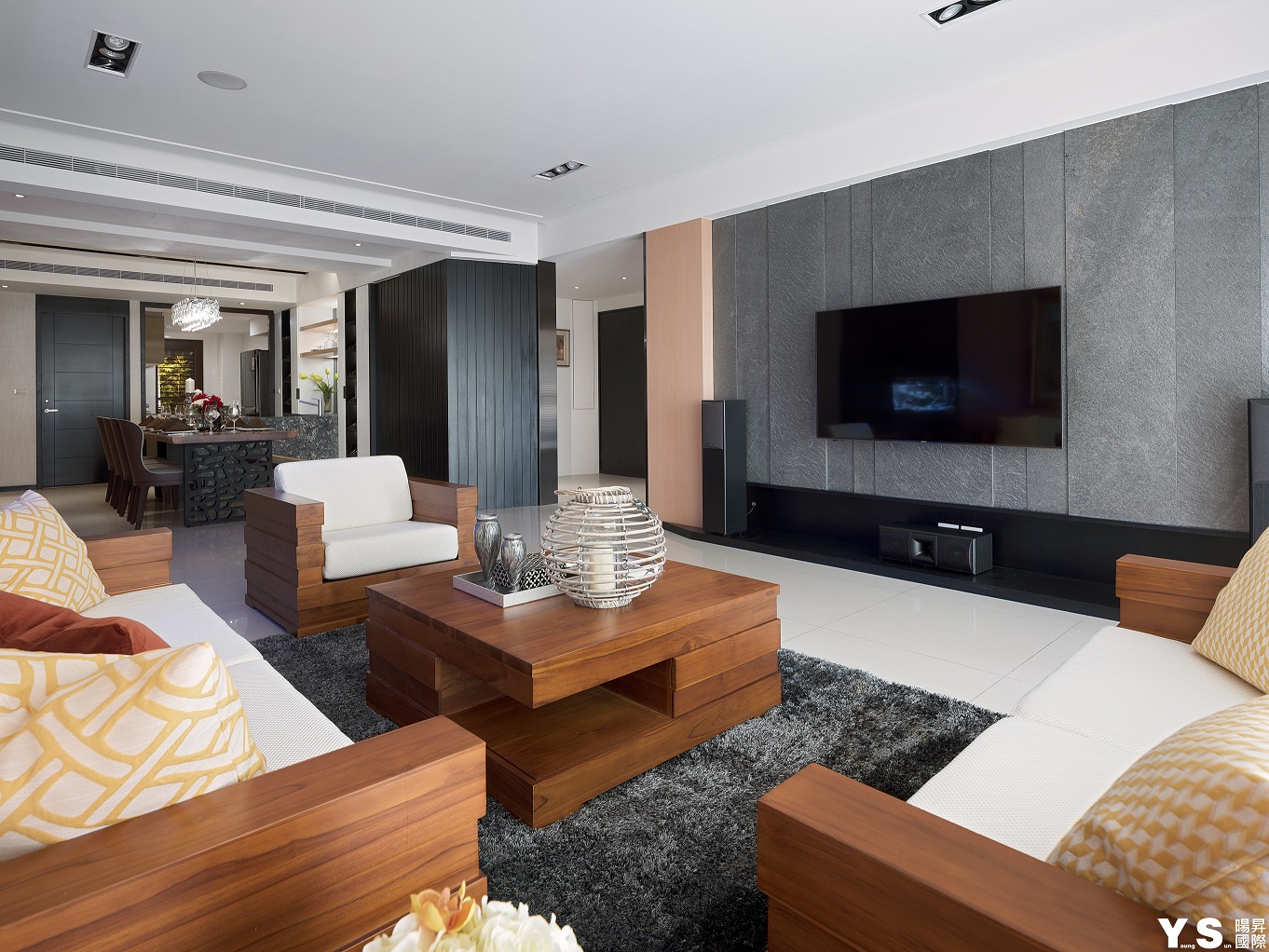 本案是屋主第三次委託YS暘昇國際設計,不同於先前的古典奢華風,此次更著重於打造業主的紓壓天地。李宗育設計師選用木質營造溫馨舒適的生活暖度,再選用鍍鈦、大理石、薄岩板雕琢空間的設計感與精緻度,並在牆面與天花以「層次感」為空間帶來與眾不同的輕快節奏;由於往來親友眾多,公領域的設計重心改放在餐廚區及和室,藉由玄關旁和室的架高地板及展示收納櫃體達到收納、聚會兼顧的實用效果,餐廚區的收納櫃更大方展現屋主的紅酒收藏,並善用主燈與鏡材營造華美意象,餐桌除了富有異材質拼接的巧思外,中島餐桌結合的設計更適合屋主與訪客互動,歡樂時刻絕不冷場。